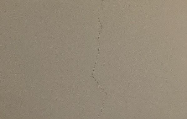 壁などにヒビが入っているのはよく見かけるものです。良く見られるのは髪の毛のような細いヒビで、Hairline crack【ヘアライン・クラック】と呼ばれています。この程度ですと、こちらではほとんど問題にされません。大きめのひびについても、時々見かけますがこちらもあまり気にされないのが実情です。